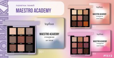 - Topface Палитра теней для век 9-цветная РТ512 Maestro Academy Eyeshadow Bar в каталоге Декоративная косметика в России;