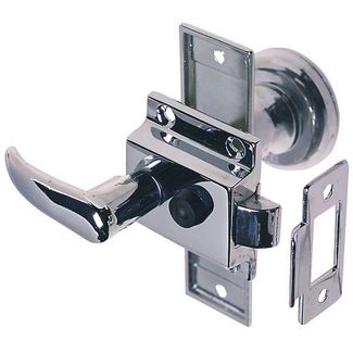 Хромированный, накладной. Для левых и правых дверей. Запирается изнутри. С дверной накладкой. Размеры замка: 54 x 44 мм. Дверная накладка 112 x 32 мм. Требуется предоплата от 20% Страна производства: США Возможен самовывоз. Есть доставка. Доставка: 350.0RUB