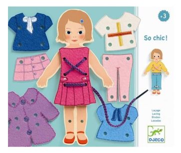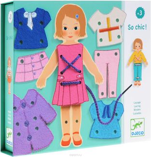 Развивающая игра и набор для творчества одновременно, она не оставит равнодушной вашу малышку. В набор входит фигурка куколки и несколько комплектов одежды, которые можно крепить к фигурке при помощи шнурка. Это увлекательное занятие развивает мелкую моторику, ловкость, тактильное восприятие, цветовосприятие, совершенствуются воображение и пространственное мышление Минимальная сумма заказа 1500 руб. Возможен самовывоз. Есть доставка.