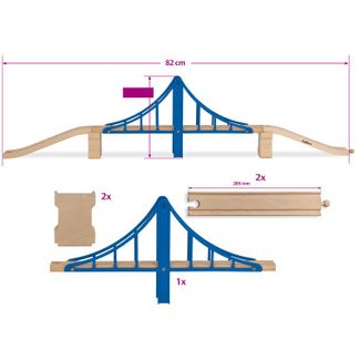 Отличным дополнением для любого железнодорожного набора Eichhorn будет висячий мост. Благодаря ему, можно проложить деревянные рельсы на двух уровнях, что значительно разнообразит игру. Используя дополнительную деталь - мост и проявив фантазию, ребенок сможет создавать новые и новые маршруты.Особенности:-высота моста позволяет поездам проезжать под ним.-детали легко соединяются между собой и с основным полотном.-состоит из 5 деталей-выполнен из натурального дерева и безопасного пластика.-подходит ко всем железнодорожным наборам Eichhorn.Характеристики:-длина моста: 82 смматериал: пластик, деревовозраст: от 3 лет None
