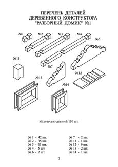 Конструктор Разборный домик 110 деталей Лесовичок подходит для детей старше 3 лет. Из 110 деталей можно собрать как минимум 6 видов домов. Минимальная сумма заказа 1500 руб. Возможен самовывоз. Есть доставка.
