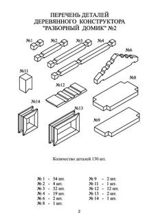 Конструктор Разборный домик 130 деталей Лесовичок подходит для детей старше 3 лет. Из 130 деталей можно собрать как минимум 10 видов домов. Минимальная сумма заказа 1500 руб. Возможен самовывоз. Есть доставка.