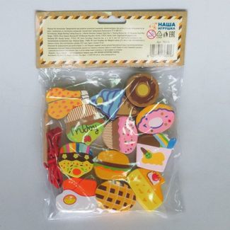 Шнуровка-бусы Mapacha Продукты очень понравится малышам. Такое занятие развивает мелкую моторику, воображение и логическое мышление. Дети смогут последовательно нанизывать фигурки-сладости на удобную шнуровку с наконечниками. Минимальная сумма заказа 1500 руб. Возможен самовывоз. Есть доставка.