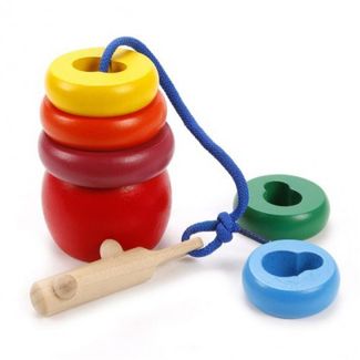 Пирамидка "Ключик" - это развивающая игрушка-тренажер для самых маленьких. Задача ребенка - постепенно нанизать на шнурок, закрепленный в круглом основании, разноцветные колечки. На конце шнурка - ключик, который малыш должен продевать в колечки, правильно совмещая при этом отверстия колечек и зубчики ключика. Игрушка развивает координацию движений, мелкую моторику рук, логику. С помощью пирамидки ребенок запомнит основные цвета и научится соотносить колечки по размерам. None Есть доставка.
