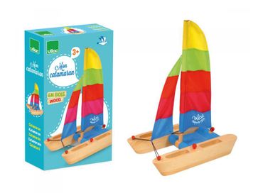 Катамаран Vilac изготовлен из натурального дерева, ребенок может играть с ним как в ванной, так и в открытых водоемах. Сдвоенный корпус и яркие разноцветные паруса делают катамаран оригинальным и динамичным, на его борту можно разместить небольшие игрушки и отправить их в путешествие. После игры рекомендуется просушить игрушку. Минимальная сумма заказа 1500 руб. Возможен самовывоз. Есть доставка.