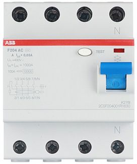 Устройство защитного отключения ABB серии F 204 с характеристикой срабатывания AC. Применение: жилые помещения, коммерческие и промышленные объекты. Предназначено для предотвращения возгораний. УЗО с током утечки 300мА защищают от пожара при утечках тока.