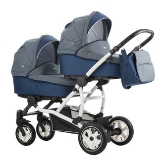 Коляска 2 в 1 для двойни Aro Team Twinat Duo темно-синяя в мелкую клетку - практичная модель для детей от рождения до 3 лет. Включает шасси с регулируемой ручкой и передними поворотными колесами, две люльки, два прогулочных блока и аксессуары - подстаканник, сумку, 2 дождевика и 2 москитные сетки. Наличные, Visa/MasterCard, Яндекс.Деньги, WebMoney Возможен самовывоз. Есть доставка.