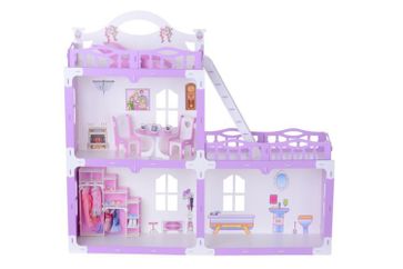 Дом размером 100х24х91 см. Для кукол до 30 см. Великолепный домик для кукол способный стать украшением детской комнаты. Посмотрите как красиво и изящно выполнены все его элементы. Бесспорно он привлечет к себе внимание. В отдалении от городов стоит он в окружении пальмовых рощ рядом с океанским побережьем. Домик выполнен из современного безопасного материала и имеет три этажа. В элементах конструкции только плавные и изящные линии. Элегантные большие узорные окна, плавные изгибы поручней, дверей и крыши — все это придает домику воздушность и легкость. В набор входят лестница на второй этаж, кровать, круглый стол и два стула, комплект тематических наклеек. О материале Домики KRASATOYS производятся в России из современного материала полифом. Это вспененный полипропилен (пористый пластик). Он невероятно воздушный, почти невесомый, при этом плотный и устойчивый к влаге. Легкость (можно перемещать, подвешивать на стену с целью экономии пространства). Гибкость (удобно собирать). Яркие цвета (не нужно раскрашивать, в отличие от фанерных). Дом-конструктор Благодаря замкам-защелкам домик собирается без дополнительной фурнитуры и инструментов. Как конструктор! Набор упакован в яркую удобную коробку с цветной печатью. Коробка имеет пластиковую ручку для транспортировки. В комплекте Конструкция домика Стол 2 стула Шезлонг Гардеробная Лестница Набор наклеек Схема сборки Обратите внимание, кукла в комплект не входит. None