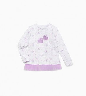 - Джемпер трикотажный для девочки - Сердечки | набивка бело-сирень по выгодной цене 330 р. руб.;