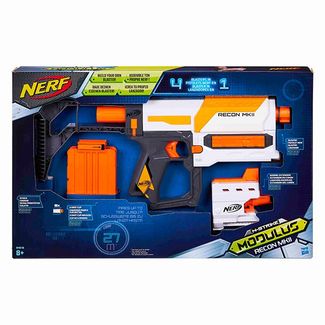 Nerf Modulus Recon MKII - это уникальный шестизарядный бластер со съемными дульной насадкой и прикладом, благодаря чему оружие можно собирать в 4 разных конфигурациях. В комплект входит магазин и 6 патронов. Они состоят из мягкого материала и вспененной резины, совершенно безопасны и не оставляет на теле синяков при попадании. Дальность выстрела достигает 27 метров, а ярко-оранжевая насадка на стрелах позволит быстро найти их после стрельбы.Вы также можете расширить возможности бластера, модернизируя его при помощи различных элементов серии Nerf Modulus (продаются отдельно). Игрушка предназначена для детей от 8 лет. None