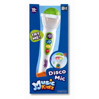 Disco микрофон обязательно обрадует ребенкаDisco микрофон – интересная игрушка, которая позволит малышу почувствовать себя звездой на сцене. Игровые наборы от Keenway выглядят как настоящие, что приведет в восторг ребенка, который любит не только петь, но и слушать музыку. Микрофон отлично помещается в маленьких детских ручках, благодаря своей форме и размеру. Его длина составляет 27,5 см.На корпусе микрофона расположены четыре разноцветные кнопки. Если нажать на кнопку «MIC», игрушка переходит в режим микрофона(звук меняется совсем не значительно, чтобы малыш не испугался) и юный певец или певица могут исполнить любимую песню. При нажатии на кнопку в виде нотки проигрываются веселые мелодии. Если нажать на желтую кнопку с двумя звездами, будет воспроизведен звон тарелок. Красная кнопка со звездой проигрывает звук барабана. Каждая мелодия сопровождается световыми эффектами, а в конце каждой песни ребенок будет вознагражден аплодисментами.Игрушечный микрофон помогает развить у малыша музыкальный слух и чувство ритма, а также формировать творческие навыки. Играя с микрофоном, ребенок будет запоминать мелодии и слова песен. Благодаря цветовым эффектам и ярким краскам микрофона, развивается цветовое восприятие ребенка. Нажимая на кнопки, малыш будет развивать мелкую моторику рук. Так же игрушка поможет малышу раскрепоститься и научиться танцевать под музыку. Музыкальная игрушка рекомендована для малышей от 18 месяцев. В комплект входят 2 демонстрационные батарейки типа АА, которые необходимы для работы микрофона. Продукция сертифицирована, экологически безопасна для ребенка, использованные красители не токсичны и гипоаллергенны. None Можно купить без предварительного заказа.