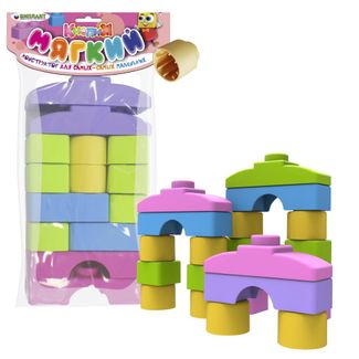 Развивающий мягкий конструктор. Отличный тренажер для малышей. Развивает: тактильные ощущения, представления о цвете и предмете, первые навыки конструирования. Преимущества: размеры деталей удобны для детской ручки, безопасный материал, детали разной формы, материал легко моется, не боится воды и банных процедур, можно брать с собой ванну. None