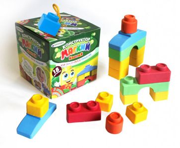 Развивающий мягкий конструктор. Отличный тренажер для малышей. Развивает: тактильные ощущения, представления о цвете и предмете, первые навыки конструирования. Преимущества: размеры деталей удобны для детской ручки, безопасный материал, детали разной формы, материал легко моется, не боится воды и банных процедур, можно брать с собой ванну. None