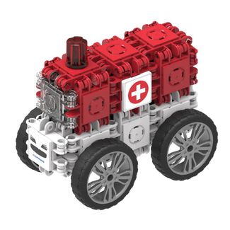 Автомобили спасательных служб, "скорые" и пожарные машины всегда привлекают внимание на улице. Всем юным спасателям "Кликформерс" приготовил Rescue Set — набор для сборки машин, готовых прийти на помощь. Основные детали этого набора, красные и белые квадраты, соединяются между собой под различными углами. Соединение в конструкторе очень прочное: готовые машинки можно использовать для игры! Соберите "Скорую помощь" или пожарный автоомбиль, с раздвижной лестницей или с цистерной для воды. На крышу укрепляем мигалку, и можно выезжать! В наборе вы найдете все нужные детали и аксессуары, а подробная иллюстрированная инструкция объяснит принципы сборки и конструирования. Соединение деталей настолько прочное, что для разборки моделей после игры вам понадобится специальный пластиковый разделитель (входит в состав набора). Пластиковые квадраты защелкиваются друг с другом в аккуратную стопку: уборка станет легкой и интересной. В комплекте Квадрат — 45 шт. Колесо — 4 шт. Мини-колесо — 4 шт. Ось для колес — 2 шт. Шестиугольник — 2 шт. Арка — 1 шт. Соединитель А — 1 шт. Соединитель Б — 1 шт. Декоративная накладка — 8 шт. Основа сирены — 1 шт. Лампа — 2 шт. Соединительная ось — 2 шт. Наклейки Разделитель Что такое "Кликформерс"? Новый развивающий конструктор разработан командой экспертов компании "Кликс" (Бельгия) и инженерами "Магформерс" (Корея). Лозунг "Соединяй и играй" разработчики успешно реализовали в деталях "Кликформерс". "Кликформерс" — это функциональная игровая система, очень простая в использовании. Детали между собой можно соединять 4 различными способами: Защелкивание. Создаем объемные блоки методом защелкивания. Складывание. Раскрывает потенциал — строим, складывая блок один на другой. Сгибание. Экспериментируем с блоками, вращая их на 180 градусов. Сцепка. Создаем бесконечные варианты комбинирования, зацепляя блоки один за