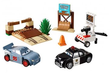 Установи новый предел скорости с Молнией МакКуином от Disney® Pixar во время тренировки на гоночном полигоне Вилли Бутта. Доставь Шерифа на место и с помощью радара определи время победителя, когда тот промчится мимо, собьёт указатель Радиатор Спрингс и прорвётся через заграждение. Это новый рекорд! Но сможет ли Молния МакКуин побить его ещё раз? Минимальная сумма заказа 500 руб.