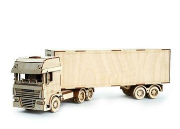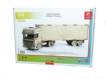 Экологически чистые конструкторы от российского производителя Lemmo помогут вашему ребенку развить мелкую моторику, воображение, пространственное мышление, логику и предметное моделирование. Все детали выполнены из качественной древесины и имеют насыщенный запах дерева. Наборы укомплектованы клеем ПВА и наждачной бумагой. Любой конструктор после сборки можно раскрасить акриловыми красками или гуашью. Но даже без этого в результате получается полноценная красивая игрушка с подвижными элементами. Особенности модели Набор рекомендован для детей от 5 лет, но в нем довольно много деталей, поэтому ребенку немного потребуется ваша помощь и внимание. Длина собранной модели составляет 50 см. Грузовик большой и солидный, сделан очень реалистично, прицеп имеет такое крепление, чтобы он поворачивался при поворотах, колеса отлично крутятся по любой поверхности, дверцы кабины и прицепа открываются. Процесс сборки надолго увлечет и займет вашего ребенка. Минимальная сумма заказа 500 руб.