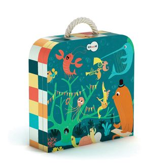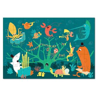 Морская филармония с гордостью представляет новую группу “Oceans 15”. Осьминог играет на барабанах, акула на органе, рыба-ёж на флейте, морская звезда и золотая рыбка на маракасах, а медуза стучит по бубну. За ударными сидят черепаха и улитка, дуэт морских коньков играет на духовых, барракуда на банджо, рыба-меч перебирает струны арфы, кит сидит за ксилофоном. За вокал же отвечают омар и сардина.45 штук, для детей старше 4-х лет. Размер: 45 x 30 см. None