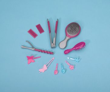 Какое любимое занятие у любой девочки? С уверенностью можно заявить, что это делать прически! С помощью игрушечных плойки для завивки, утюжка для выпрямления волос и создания эффекта гофрированных волос, а также расчески можно делать множество различных вариантов причесок для Штеффи, которые к тому же можно украсить стильными заколочками. Не стоит забывать и о девочке-стилисте Штеффи! Для нее в наборе есть расческа побольше и набор заколок для волос, которые дополнят ее модный образ. А чтобы настоящую модницу и будущего стилиста можно было распознать издалека, на телефон или на ключи можно прикрепить миниатюрный брелок в виде расчески. None
