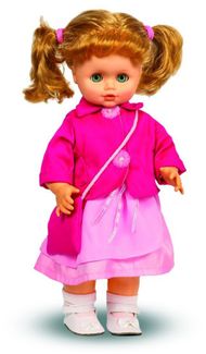 Производитель оставляет за собой право изменения цветовой гаммы одежды и волос куклы, цвет глаз может варьироваться. У милой куклы Инны от фабрики Весна яркие изумрудные глаза и прелестные золотистые хвостики. На ней надето прелестное шелковое платьице, розовый жакетик с пуговками-цветами, белые носочки и туфельки. Комплект дополняют тканевая сумочка через плечо и розовые резиночки для волос. У Инны закрываются глазки, и она умеет разговаривать. При нажатии на звуковое устройство, вставленное в спинку, кукла произносит следующие фразы: — Привет! Давай потанцуем. — Я люблю музыку. — Возьми меня за ручки. — Покружись со мной. — Как здорово! — А сейчас спой мне песенку. — А другую песенку… — Мне очень нравится! Очаровательная кукла Весна покорит сердце любой девочки! Обаятельный внешний вид и прелестные одежки игрушечных красавиц вызывают только самые добрые и положительные эмоции. Куклы производятся на российских фабриках из нетоксичных, безопасных для детей материалов. Они отличаются высоким качеством, проработанностью деталей и гармоничными пропорциями тела. Голова и ручки кукол изготовлены из эластичного винила, очень приятного на ощупь, а туловище и ножки — из прочной пластмассы. У кукол густые мягкие волосы, которые можно мыть, расчесывать и заплетать как только захочется. Они прочно закреплены и способны выдержать практически любые творческие порывы ребенка. Особый восторг у маленьких модниц вызывают нарядные костюмы, которые можно снимать и менять. Дополнительно к куклам выпускаются самые разнообразные комплекты одежды. С прелестной куклой отечественного производства возможно не просто весело проводить время, но и научиться одеваться по сезону. Игра с очаровательными куклами поможет развить мелкую моторику, а возможность менять костюмчики и прически формирует эстетический вкус. Милая игрушка станет лучшей подружкой для девочки и научит ребенка доброте и заботе о других. Минимальная сумма заказа 500 руб.