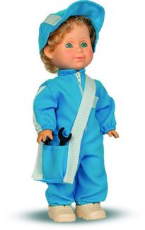 Производитель оставляет за собой право изменения цветовой гаммы одежды и волос куклы, цвет глаз может варьироваться. Для развития содержания сюжетно-ролевых игр дети должны иметь представления о разнообразных занятиях взрослых. Кукла Механик из серии "Профи" — это характерная кукла, изображающая мальчика дошкольного возраста в стилизованной одежде механика. Рыжеватые волосы, веснушки, курносый нос, задорная улыбка создают образ симпатичного и озорного мальчишки, открытого к игре и общению. Фигура механика имеет особую популярность среди мальчишек, начиная с дошкольного возраста. Это привлекает детей и способствует их идентификации с данным персонажем. В комплект одежды куклы входит: комбинезон, кепка. Комплект дополняют кроссовки и сумка с инструментами из пластмассы. Игровые и дидактические возможности куклы Кукла Митя Весна Механик может быть так называемой "методической куклой" для знакомства детей с особенностями профессии. Особенно ценно, что кукла имеет образ мальчика, подходит для мужской идентификации и, соответственно, для сюжетной игры мальчиков. Наличие элементов одежды, которые легко снимаются и надеваются, позволяет переодевать куклу, то есть легко менять образ и представлять Митю в любой другой роли. В процессе игры развивается мелкая моторика и творческое воображение ребенка. При нажатии на звуковое устройство, вставленное в спинку, кукла произносит фразы. У куклы прошитые волосы из качественного нейлона, похожие на натуральные. Игрушка имеет оптимальный размер для игры ребенка (34 см). Митя озвучен. Глаза вставные не закрывающиеся. Тело куклы пропорционально. Ручки и голова выполнены из эластичного, приятного на ощупь винила, а туловище и ноги из пластмассы. Кукла качественно сделана, она достаточно устойчива, имеет подвижные конечности, благодаря чему может стоять, сидеть и принимать различные позы. Кукла произносит следующие фразы: — Мы в профессии играем… — По душе их выбираем… — И мечтаем по