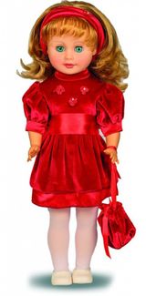 Производитель оставляет за собой право изменения цветовой гаммы одежды и волос куклы, цвет глаз может варьироваться. У прелестной куклы Людмилы от фабрики Весна ясные голубые глаза и пышные золотистые волосы. На ней надето нарядное красное платье из бархата, белые колготочки и туфельки. К платью подобран бархатные ободок в тон. У Людмилы закрываются глазки, и она умеет разговаривать. При нажатии на звуковое устройство, вставленное в спинку, кукла произносит следующие фразы: — Привет! Давай потанцуем. — Я люблю музыку. — Возьми меня за ручки. — Покружись со мной. — Как здорово! — А сейчас спой мне песенку — А другую песенку — Мне очень нравится! Очаровательная кукла Весна покорит сердце любой девочки! Обаятельный внешний вид и прелестные одежки игрушечных красавиц вызывают только самые добрые и положительные эмоции. Куклы производятся на российских фабриках из нетоксичных, безопасных для детей материалов. Они отличаются высоким качеством, проработанностью деталей и гармоничными пропорциями тела. Голова и ручки кукол изготовлены из эластичного винила, очень приятного на ощупь, а туловище и ножки - из прочной пластмассы. У кукол густые мягкие волосы, которые можно мыть, расчесывать и заплетать как только захочется. Они прочно закреплены и способны выдержать практически любые творческие порывы ребенка. Особый восторг у маленьких модниц вызывают нарядные костюмы, которые можно снимать и менять. Дополнительно к куклам выпускаются самые разнообразные комплекты одежды. С прелестной куклой отечественного производства возможно не просто весело проводить время, но и научиться одеваться по сезону. Игра с очаровательными куклами поможет развить мелкую моторику, а возможность менять костюмчики и прически формирует эстетический вкус. Милая игрушка станет лучшей подружкой для девочки и научит ребенка доброте и заботе о других. Минимальная сумма заказа 500 руб.