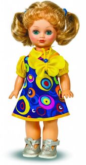 Производитель оставляет за собой право изменения цветовой гаммы одежды и волос куклы, цвет глаз может варьироваться. У очаровательной куклы Лены от фабрики Весна малахитово-зеленые глаза и прелестные золотистые хвостики. На ней надеты яркое летнее платье с бабочкой и серебристые башмачки. Комплект дополняют резиночки в тон платью. У Лены закрываются глазки, и она умеет разговаривать. При нажатии на звуковое устройство, вставленное в спинку, кукла произносит следующие фразы: — Теперь ты моя подруга. — Ты не забыла - сегодня мы идем на праздник. — Нам нужно быть красивыми. — Сделай мне прическу! — Получилось очень красиво! — Теперь себе. — Не забудь про маникюр. — А нарядное платье? — Мы сегодня самые красивые! Очаровательная кукла Весна покорит сердце любой девочки! Обаятельный внешний вид и прелестные одежки игрушечных красавиц вызывают только самые добрые и положительные эмоции. Куклы производятся на российских фабриках из нетоксичных, безопасных для детей материалов. Они отличаются высоким качеством, проработанностью деталей и гармоничными пропорциями тела. Голова и ручки кукол изготовлены из эластичного винила, очень приятного на ощупь, а туловище и ножки — из прочной пластмассы. У кукол густые мягкие волосы, которые можно мыть, расчесывать и заплетать как только захочется. Они прочно закреплены и способны выдержать практически любые творческие порывы ребенка. Особый восторг у маленьких модниц вызывают нарядные костюмы, которые можно снимать и менять. Дополнительно к куклам выпускаются самые разнообразные комплекты одежды. С прелестной куклой отечественного производства возможно не просто весело проводить время, но и научиться одеваться по сезону. Игра с очаровательными куклами поможет развить мелкую моторику, а возможность менять костюмчики и прически формирует эстетический вкус. Милая игрушка станет лучшей подружкой для девочки и научит ребенка доброте и заботе о других. Минимальная сумма заказа 500 руб.