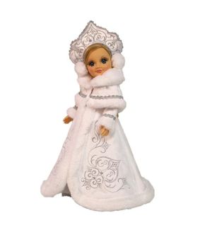 Производитель оставляет за собой право изменения цветовой гаммы одежды куклы, цвет глаз может варьироваться. Снегурочка Анастасия с выразительными глазами, пушистыми ресницами и роскошными волосами. На кукле белая расшитая серебристыми нитями и отороченная мехом шубка и белоснежный кокошник. В комплект одежды также входят: белое платье, ажурные колготки и мягкие белые сапожки. Игровые возможности куклы При нажатии на звуковое устройство, вставленное в спинку, кукла произносит фразы. Элементы кукольной одежды: застежки, головной убор, обувь способствуют развитию мелкой моторики. Кукла произносит следующие фразы: — Привет! — Я твоя новая подруга. — Все мои подруги увлекаются танцами, поэтому они такие классные! — Танцы — это пластика, красивая походка и осанка. — А ты любишь танцевать? — Какие танцы ты знаешь? — Есть бальные, современные, народные танцы… — Уметь танцевать — это здорово! — Давай потанцуем! Прекрасные длинные волосы, похожие на натуральные, можно завивать, расчесывать и укладывать в разные прически, меняя образ куклы. Продуманная конструкция куклы позволяет ее сажать, ставить на ножки, переодевать. Эта кукла подходит для сюжетных игр и разнообразных игровых действий ребенка. Высота куклы 42 см. Тело куклы пропорционально и гармонично: руки и голова выполнены из эластичного, приятного на ощупь винила, а туловище и ноги из пластмассы. None