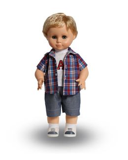 Производитель оставляет за собой право изменения цветовой гаммы волос куклы, цвет глаз может варьироваться. Мальчик из серии "Моя любимая кукла" может стать настоящим другом для ребенка. Его комплект одежды состоит из рубашки из сорочечной ткани, с короткими рукавами, отложным воротником, застежкой спереди на 3 пуговки, трикотажной футболки с короткими рукавами, шорт ниже колена из джинсовой ткани, трикотажных носков. Обувь: кроссовки. Игровые и дидактические возможности куклы Наличие элементов одежды, которые легко снимаются и надеваются, разнообразит возможности сюжетно-ролевых игр с этой куклой, в процессе которых развивается мелкая моторика и творческое воображение ребенка. В компанию к Мальчику часто приобретают куклу Инну, так как они подходят друг к другу по росту и с ними можно разыграть много социально-бытовых ситуаций. Прекрасные прошитые волосы из качественного нейлона, похожие на натуральные, можно расчесывать. Рост куклы 43 см. Кукла не озвучена. Глаза вставные закрывающиеся. Тело куклы пропорционально. Ручки и голова выполнены из эластичного, приятного на ощупь винила, а туловище и ноги из пластмассы. None