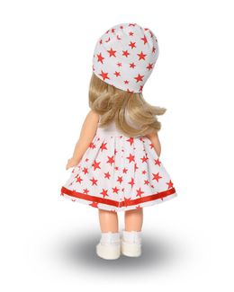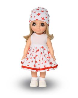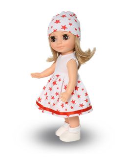 Производитель оставляет за собой право изменения цветовой гаммы одежды и волос куклы, цвет глаз может варьироваться. Кукла Ася станет лучшей подружкой для вашей девочки. Ее выразительные, широко распахнутые глаза и обаятельная улыбка создают образ доброй и нежной малышки. Кукла представлена в летнем комплекте одежды. Элегантное и милое платье, отстроченное тесьмой по подолу. Подобранные в тон шапочка, носочки и туфельки. Кукла подходит для сюжетных игр и разнообразных игровых действий ребенка. Асю можно укладывать спать, так как у нее закрывающиеся глазки. Шелковистые волосы (9 см) можно расчесывать, завивать, создавая новые образы. Невысокий рост (26 см) позволит брать ее с собой в детский сад, семейное путешествие, на прогулку. Элементы кукольной одежды: застежки, головные уборы, обувь способствуют развитию мелкой моторики. Кукла не озвучена и полностью выполнена из современного материала винил, уникальный и неповторимый дизайн лица и тела. Ручки, ножки и голова поворачиваются. В изготовлении куклы используется ручная работа: роспись бровок, ресничек, щек, губ, создание прически. None