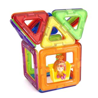 Magformers 14 – идеальный набор для начинающего строителя. В его состав входят квадраты и треугольники - самые базовые и легкие в применении фигуры. С их помощью малыш сможет постепенно перейти от аппликаций на плоскости к построению объемных моделей. Все детали выполнены в ярких радужных цветах, что непременно порадует маленького архитектора. Набор научит ребенка отличать трёхмерные объекты от двухмерных, через игру познакомит с геометрическими фигурами, поможет развить цветовое восприятие. Яркая и красивая упаковка набора делает его замечательным подарком на любой праздник. Набор Magformers 14 содержит 14 элементов. В комплекте Треугольник — 8 шт. Квадрат — 6 шт. Внимание! Наборы Магформерс предназначены для детей старше 3-х лет. Дети меньшего возраста тоже могут играть конструкторами Магформерс, но только под присмотром родителей! Конструкторы Магформерс — это неиссякаемый источник веселья и творчества! Множество различных по форме деталей позволяет собирать самые разнообразные трехмерные модели: машины, башни, роботов, милых зверушек и многое другое. Наборы Магформерс выгодно отличаются от других конструкторов тем, что внутри каждого элемента находятся магниты. В процессе соединения деталей магниты сами поворачиваются друг к другу нужной стороной, что делает процесс сборки таким легким и удобным. Магниты надежно удерживают соединения деталей — с постройками можно играть, не боясь, что они развалятся. К тому же, магнитное скрепление конструкции, в отличие от шурупной, позволяет без лишних усилий изменять форму предметов и разбирать их. Помимо того, что это отличное развлечение, конструктор Магформерс обладает и развивающим потенциалом: работа с деталями улучшает мелкую моторику ребенка; взаимодействие с объемными фигурами развивает пространственное и абстрактное мышление; необходимость задействовать обе руки стимулирует как левое, так и правое полушария мозга; возможность построить практически бесчисленное множество моделей развивает в