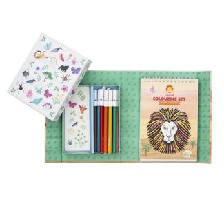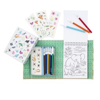 Набор для творчества Tiger Tribe даст девчонкам и мальчишкам возможность покреативить. Все необходимое есть в одной коробочке с магнитной застежкой и не потеряется. С ним можно хорошо провести время дома или же взять с собой в дорогу. Настоящие звезды животного мира - насекомые и млекопитающие, хищники и травоядные. Ты можешь сам раскрасить их и декорировать свои картинки наклейками. В комплекте Альбом 36 листов 5 листов с наклейками 10 фломастеров Коробка для хранения с магнитной застежкой None