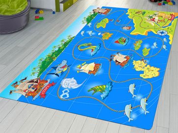 Интересный рисунок детского ковра Флинт погрузит ребенка в увлекательный мир морских путешествий. Практичная модель выполнена из прочного и приятного на ощупь материала, который можно стирать в машинке при температуре 30 градусов, используя деликатный режим.<br>