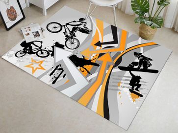 Оригинальный рисунок детского ковра Скейт-парк придется по вкусу мальчишкам любого возраста. Приятная на ощупь поверхность добавляет уюта и легко очищается от загрязнений. При необходимости модель можно постирать руками или в машинке при температуре 30 градусов, используя деликатный режим. Ковер упакован в прозрачную сумку с ручкой.<br>