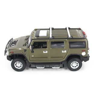 Модель автомобиля Hummer H2 в масштабе 1:14. Кузов машинки точно копирует оригинальный автомобиль. Длина автомобиля 35 см, сделана из качественного прочного пластика, который легко выдерживает удары и аварии при гонках на трассе. None