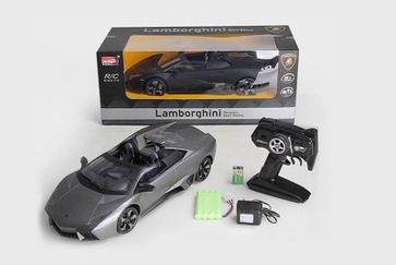 Радиоуправляемая модель автомобиля Lamborghini Reventon Roadster в масштабе 1:10. Автомобиль может двигаться в любых направлениях, а его кузов выполнен в точном соответствии с прототипом. Длина кузова 470 мм. None