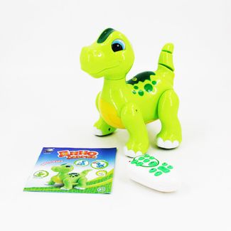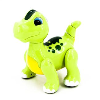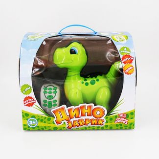 Радиоуправляемый динозаврик - 2056A- это интерактивный динозаврик на дистанционном управлении - оригинальный подарок с разнообразными функциями для развлечения вашего ребенка. Необычный, но очень милый, питомец умеет двигать головой и вилять хвостиком, ходить вперед и назад, бегать и танцевать. Кроме того, он с удовольствием общается и выполняет голосовые команды, поет, читает сказки и любит задавать интересные несложные вопросы, способствующие расширению кругозора ребенка. Пульт ДУ имеет простой и понятный для ребенка интерфейс: кнопки выполнены в удобной для детских пальчиков форме. Комплект функционирует от обычных пальчиковых батареек и готов к эксплуатации в любой момент.Основные особенности игрушки:Голосовое управление на анг. языкеДвигаются ноги, голова и хвостСветовые эффектыРазмер динозаврика 22 x 19 x 16 см12 функций, которые выполняет динозаврик голосом или через пульт ДУ10 вопросов и 3 сказки про животных, которые может задавать ребенок голосом и динозаврик на них с удовольствием отвечаетВозможность программирования на выполнение нескольких последовательных действий (до 10 команд)Функция повторения - динозаврик повторяет Ваши словаКомплект поставки:Динозаврик зеленого цветаПульт управления ИКРусская инструкцияКомплект требует:6 батареек типа АА None