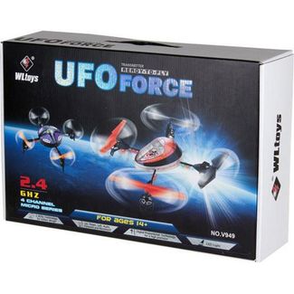 Компания WL TOYS, решила не отставать от веяний времени и приступила к выпуску мини квадрокоптера WL toys UFO Force V949-2. Диаметр одного пропеллера равен 13,5 см. Модель выпускается в комплектации RTF, поэтому для полетов понадобятся только 6 батареек АА для пульта. Сам квадрокоптер WL toys V949-2, пульт управления с LCD дисплеем, LiPo аккумулятор, зарядное устройство, 2 запасных пропеллера и инструкция уже упакованы в симпатичную коробку.Отличительные черты всех квадрокоптеров - высокая стабильность в полёте и грузоподьёмность, по сравнению с радиоуправляемыми вертолётами. Так же мультикоптеры крепче вертолётов из-за упрощённой конструкции. Стабильный и устойчивый полет. Легок в управлении и отзывчив на команды пилота. Время полета может составлять до 10 минут. Светодиодная подсветка V949-2 может летать внутри помещаний и на открытом воздухе при слабом ветре. Передатчик оснащен ЖК-дисплеем для простоты и точночти управления. Квадролет может летать вверх, вниз, вперед, назад, вправо, влево. Может выполнять впечатляющие 3D трюки! Пульт управления 2.4GHz. Наличие 3-х осевого гироскопа придаёт квадролёту идеальную устойчивость, так что управлять им сможет даже ребёнок без опыта управления радиоуправляемыми моделями.Высокая скорость, моментальная реакция и удароустойчивость WL toys V949-2 - всё что нужно для полётов на улице: как спокойных, так и экстремально эффектных и быстрых. Скорость регулируется с пульта управления: можно выбрать одну из 5 скоростей - от самой медленной, для обучения и висения на месте, до акробатической, в которой можно выполнять 3D перевороты.Управляется по четырём пропорциональным каналам, подобно любому четырёхканальному вертолёту: обороты (высота), тангаж (вперёд, назад), элероны (крен вправо, крен влево), руддер (поворот влево, поворот вправо). Купив квадрокоптер V949-2, владельцам 4-х и шестиканальных вертолётов не придётся привыкать к новому управлению. Новинка укомплектована самой современной аппаратурой радиоуправления с частотой 2.4Gh
