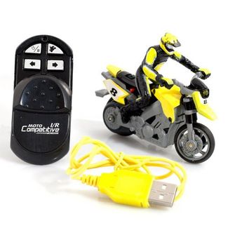 Стильный мотоцикл с миниатюрной фигуркой гонщика и расширенным функционалом подарит своему владельцу мощный заряд позитива от каждого запуска. Эта игрушка станет прекрасным дополнением даже самого разнообразного мини автопарка!Модель готова к исполнению невиданных трюков. Она может двигаться в любом направлении, легко обходит любые препятствия и быстро набирает скорость в процессе движения. Этот мотоцикл никогда не потеряется в темноте. Устраивайте экстремальные заезды и просто любуйтесь светодиодной подсветкой реалистичной модели при выключенном свете. Яркий дизайн и, конечно, возможность подзарядки от компьютера – несомненные плюсы данной модели. Увы, пульт дистанционного управления обеспечивает радиус действия только в пятнадцать метров, но ведь это весьма приличное пространство для маневра! Да и уникальные возможности мотоцикла скрасят этот скромный недостаток. Купите радиоуправляемый мотоцикл сыну, порадуйте друга или самого себя. Увлекательное времяпрепровождение и огромное количество положительных эмоций владельцу этой модели гарантированно! None