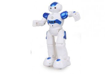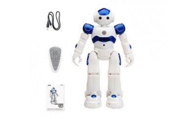 Этот робот управляется дистанционно, при помощи пульта управления или по мановению руки. Робота можно запрограммировать на выполнение целого ряда различных задач. Эта забавная игрушка умеет ходить, танцевать, проигрывать музыку, двигать руками, патрулировать, мигать светодиодными глазами и говорить на языке роботов. Корпус робота изготовлен из прочного нетоксичного пластика, на голове есть микрофон. В глазах установлены светодиоды, а внутри груди специальные датчики, благодаря которым работ реагирует на движения ладони. Для питания внутри имеется LiPo аккумулятор 3.7 В, 600 мАч, который заряжается примерно за 90-120 минут, после чего робот действует 30-40 минут. Пульт управления имеет 15 кнопок, но управление не вызывает проблем. С роботом легко справляются дети, тем более что он оснащен демонстрационным режимом и наглядно показывает все, что умеет. Этот робот не просто забавная игрушка, которая нравится всем, для ребенка эта игрушка превращается в живое существо, которое его понимает и с ним можно играть и шалить. Особенности: Робот с удивительными способностями, который выполняет ваши приказы. Дистанционное управление и программирование. Проигрывает музыку, танцует, разговаривает, ходит, машет руками, патрулирует и демонстрирует свои способности. Способен выполнять большое количество команд. Хороший компаньон для изучения и развлечения детей. Самый желанный подарок для ребенка.Технические характеристики: Размеры: 260x160x90 мм. Дальность действия управления: около 10 м. Аккумулятор: LiPo 3.7 В, 600 мАч. Время зарядки: около 90-120 минут. Время работы: 30-40 минут.В комплект входит: Робот с встроенным аккумулятором. Пульт управления. USB зарядное устройство.Рекомендуется докупить: 2 батарейки АА для пульта управления None