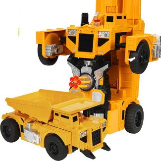 Радиоуправляемый самосвал и робот одновременно, трансформер со звуковыми и световыми эффектами, а также с возможностью стрельбы присосками. None
