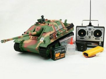 Радиоуправляемая модель немецкой самоходной артиллерийской установки периода Второй мировой войны Jagdpanther. Модель детально копирует свой прототип. Управление осуществляется каждой гусеницей отдельно и подъемом пушки, а также танк оборудован пневматической пушкой, стреляющей пластиковыми шариками. None