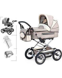 Коляска 2 в 1 Reindeer Style бежевая - комплект, включающий классическое шасси с надувными колесами, прогулочный блок, люльку, сумку для мамы, дождевик, москитную сетку и конверт с натуральной овечьей шерстью. Для детей от рождения до 3 лет. Наличные, Visa/MasterCard, Яндекс.Деньги, WebMoney Возможен самовывоз. Есть доставка.