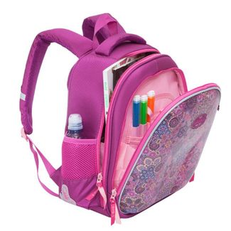Рюкзак школьный GRIZZLY "Узоры" лилового цвета, для девочки. Данный рюкзак рассчитан для детей школьного возраста от 7–10 лет. Формованный (хорошо держащий форму). Два отделения. Три отдела в основном отделении. Внутренний карман для ручек, телефона, мелочей и тетрадок. Держатель для ключей в переднем отделении. Укрепленные лямки и спинка. Ручка для переноски. Размер рюкзака: 28×36×20 см Вес рюкзака: 1,03 кг Материал: нейлон None