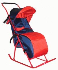 Модель санко иммитирующая коляску, только вместо колес имеет полозья. У санок высокое положение мягкого сиденья,есть ремни безопасности для фиксации малыша, подножка для дополнительного удобства. None