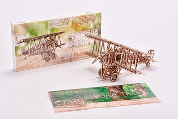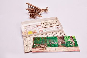 Чем знамениты братья Райт? Правильно, они изобрели самолет, а вместе с тем подарили человечеству возможность летать как птицы, и это поистине одно из величайших достижений человечества! Самолет от компании Wood Trick не похож на модели, выпущенные другими компаниями, поскольку при ее создании и сборке не используется ни капли клея, краски или вредных для здоровья веществ. Наш самолет абсолютно безопасен и родители могут не беспокоиться за здоровье своих детей, которые решили поиграть с ним! Соберите модель самолета вместе с вашим ребенком, и вполне вероятно, что у него проснется интерес к авиамоделированию или к аэрокосмической технике. Может быть, именно ваш ребенок будет тем, кто разработает технологию, которая откроет человечеству путь к новым горизонтам! Набор "Самолет" состоит из 148 деталей, однако с его сборкой справится как взрослый, так и ребенок, тем более, что к набору прилагается простая и понятная инструкция. Внимательно ознакомьтесь с инструкцией по сборке, и вы сможете легко собрать собственную модель. Братья Райт подарили человечеству возможность летать, может быть у вас получится осуществить мечту человечества о путешествии к новым звёздам и планетам! В комплекте Пластины с деталями Резинки Зубочистки Парафин Инструкция по сборке Что такое Wood Trick? Наборы от компании Wood Trick производятся из экологически чистой натуральной древесины, без использования клея и вредных для здоровья примесей. Поэтому даже самые маленькие дети могут играть в них (тем не менее, рекомендуем родителям присматривать за малышами). В каждом наборе присутствует подробная инструкция по сборке и красивая иллюстрация готового изделия. Натурально и экологично. Изготовлено из качественной шлифованной березовой фанеры Сборка без клея. Быстро, чисто и без специальных инструментов Удобно. Детали вырезаны и готовы к сборке по подробной иллюстрированной инструкции Чистая механика. Собранные модели полнофункциональны и максимально детализир