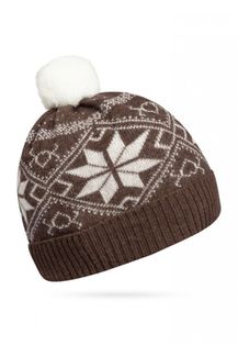 ОТ -30 ДО +5 ⁰С Теплая нарядная шапочка с небольшим помпоном просто незаменима для занятий зимними видами спорта, прогулок на свежем воздухе, активного отдыха в холодное время года. Спортивный фасон, классический скандинавский узор «снежинки», контрастные сочетания цветов придают шапке эффектный вид. Натуральная мериносовая шерсть отлично согревает даже в сильный мороз, а удобные отвороты по краям служат дополнительным утеплением. Пряжа состоит из 100% шерсти мериносовых овец. Терморегуляционные свойства шерсти помогают поддерживать комфортную температуру кожи головы, не допуская переохлаждения или перегрева. Важно, что шерсть мериносов не вызывает аллергии и раздражения, мягка на ощупь и создает комфортные ощущения при носке. Узор вязки «снежинки» представляет собой сложное переплетение нитей, что обеспечивает дополнительно утепляющую двойную воздушную прослойку в шапке. Коричневый и белый цвета гармонично сочетаются друг с другом, а белый помпон служит эффектным украшением. Эластичный трикотаж плотно облегает голову, надежно защищая лоб, уши и затылок от холода. Высота отворота позволяет регулировать глубину шапки, подбирая ее комфортную посадку по собственному вкусу. None