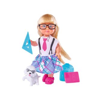 Любимая куколка многих девочек по имени Еви собирается отправиться на свой первый школьный урок! Она собирает в рюкзак школьные принадлежности и ей помогает в этом любимый питомец щенок, который, как и хозяйка, надел очки в темной оправе! Руки и ноги куколки двигаются, поэтому ваша малышка может придать ей различные позы для более реалистичной игры, а в кисти куколки легко вставляются игровые аксессуары из набора. Размер игрушки: 12 см. Размер упаковки: Длина: 4,6 Ширина: 14,1 Высота: 16,2 Внимание! Фактический цвет изделия может незначительно отличаться от цвета на фотографии в связи с особенностями цветопередачи различных цифровых устройств. None