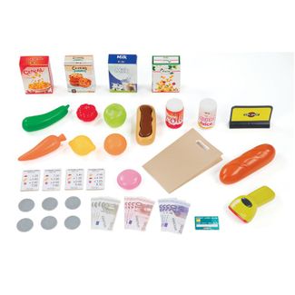 Добро пожаловать в супермаркет! Игра с данным игровым набором позволит детям почувствовать себя настоящими продавцами, научит их обращаться с деньгами и подарит массу положительных эмоций.Данная игрушка оснащена калькулятором, терминалом для карточек с функцией выдачи чека, сканером и макетом микрофона. Кассовый аппарат с устройством для чтения кредитных карт оснащен световыми и звуковыми эффектами.В наборе 27 аксессуаров: 12 купюр, 6 монет, 1 пластиковая карточка, 4 ценника, 2 коробки, 1 банка, 1 считыватель штрихкода.Тип батареек - 1 x LR54, 3 x AA / LR6 1.5V (входят в комплект).Возраст: для детей от 3 лет.Размеры кухни в собранном виде: 115 x 45 x 94 см. None