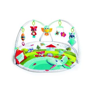 Развивающий коврик с дугами "Солнечная полянка" от торговой марки Tiny Love - это полноценный игровой комплекс, состоящий из множества элементов, интересных для любого малыша. Модель отличается привлекательным, тщательно продуманным дизайном и яркой расцветкой. Гибкие дуги регулируются и фиксируются в нескольких положениях. Ребенок может играть сидя, лежа на спинке или животике - в любом случае он найдет для себя увлекательное занятие.Кроха с удовольствием будет рассматривать забавных зверюшек, играть с шуршащей подвесной игрушкой, наблюдать в зеркале свое отражение, брать в ручки мягкую погремушку или колокольчик. Коврик, сшитый из мягкого, приятного на ощупь материала и украшенный яркими рисунками, а также подушка для животика с шуршащими элементами подарят ребенку чувство уюта и комфорта.Набор включает в себя чудесную интерактивную игрушку с функцией записи голоса, оснащенную световыми эффектами и музыкальным сопровождением. Зеркальце, входящее в комплект, можно использовать и в качестве рамки для фотографии. None