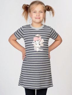Закажите Туника в полоску из вискозы для девочки - Мульты | серый с принтом у компании GIPER-TEX в Россиина портале Alloy: